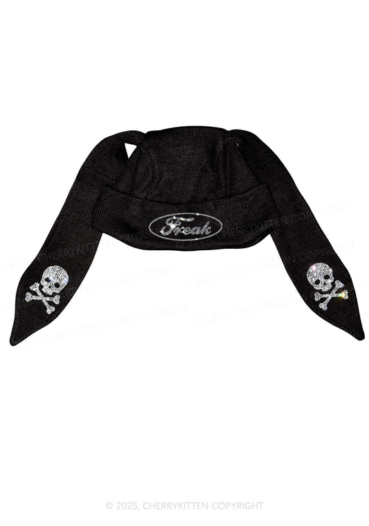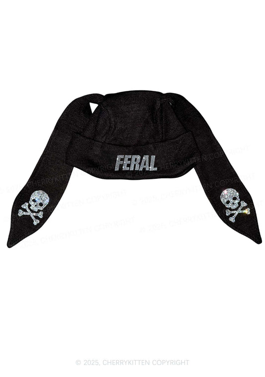 Rhinestone Feral Skull Y2K Bunny Ear Knitted Hat Cherrykitten