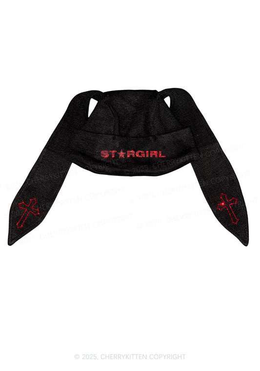 Rhinestone Stargirl Y2K Bunny Ear Knitted Hat Cherrykitten