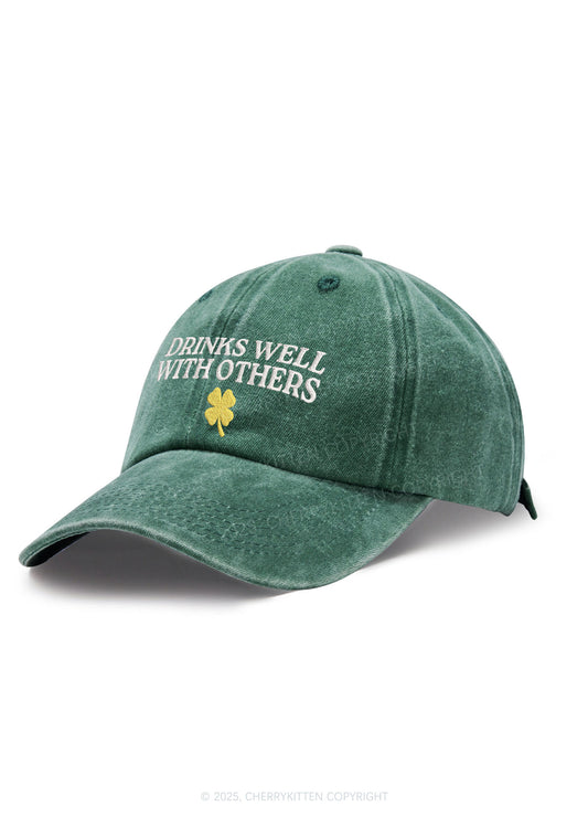 Embroidered Drinks Well St Patricks Y2K Washed Baseball Cap Cherrykitten