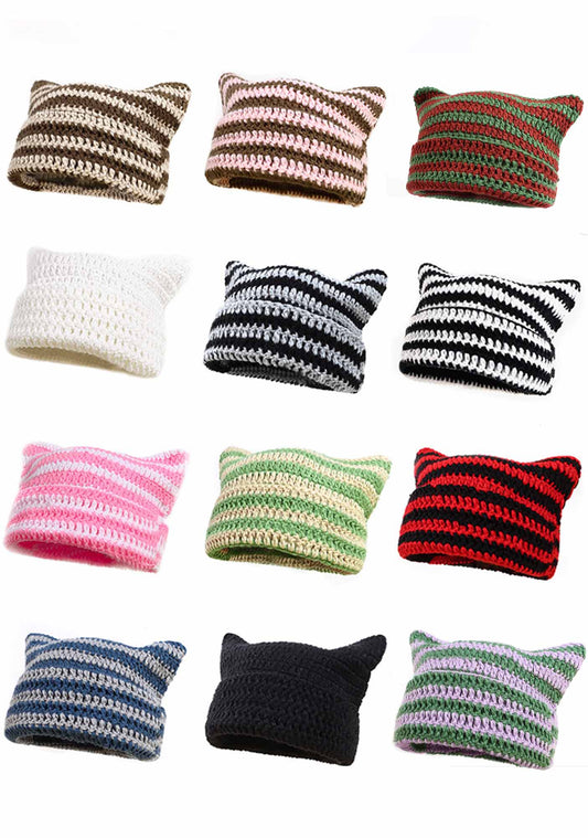 Cute Crochet Cat Ear Beanie Y2K Hat Cherrykitten
