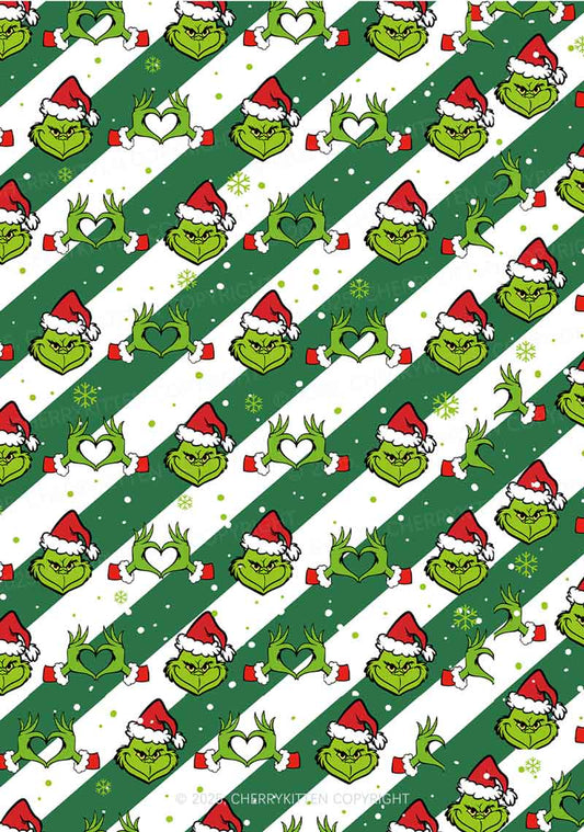 Christmas Green Santa Pickle Y2K Fleece Long Sleeve Pajama Set Cherrykitten