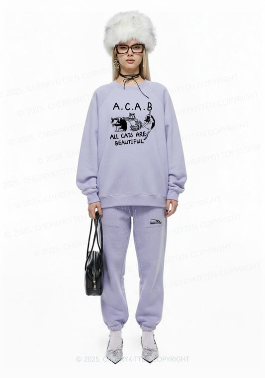 ACAB Cats Y2K Fleece Sweatshirts Set Cherrykitten