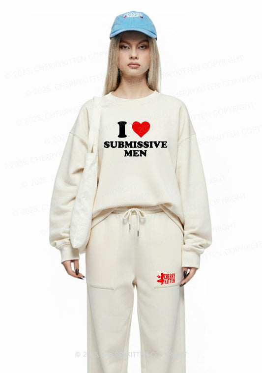 I Love S Men Y2K Fleece Sweatshirts Set Cherrykitten