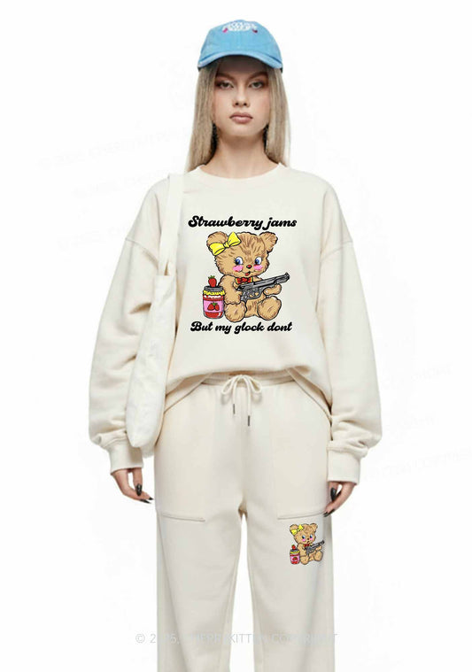 Strawberry Jams Bear Y2K Fleece Sweatshirts Set Cherrykitten