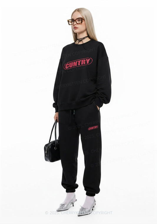 Cuntry Y2K Fleece Sweatshirts Set Cherrykitten