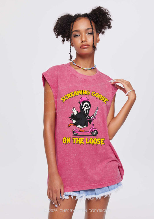 Halloween Screaming Goose On Loose Y2K Washed Muscle Tank Cherrykitten