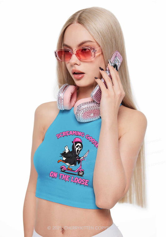 Halloween Screaming Goose On Loose Y2K Crop Tank Top Cherrykitten