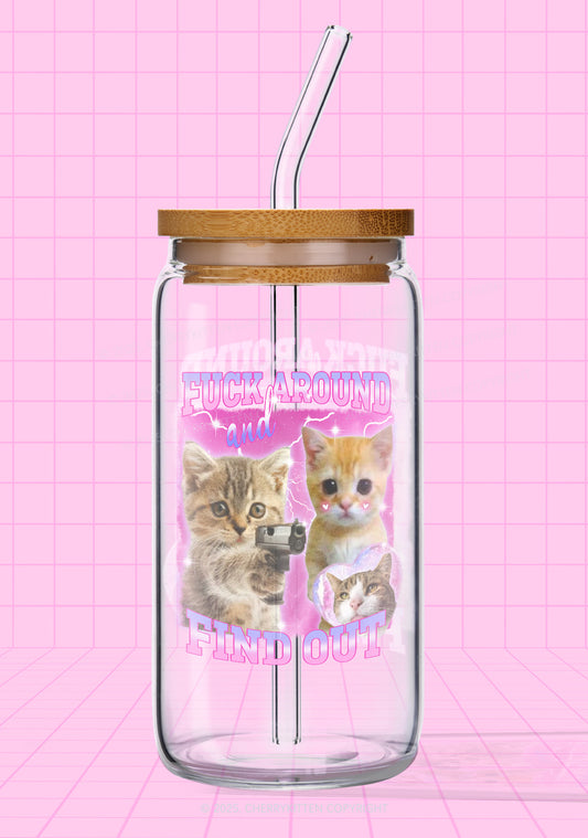 Fxxk Around Cats Y2K Printed Glass Cup Cherrykitten