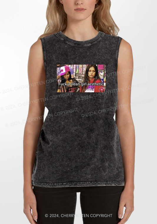 Autistic Ready To Fxxk Y2K Washed Muscle Tank Cherrykitten