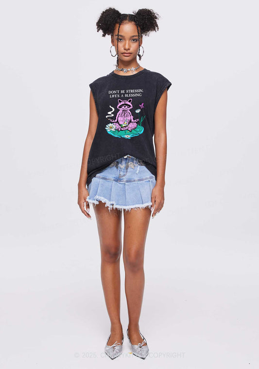 Dont Stress Raccoon Y2K Washed Muscle Tank Cherrykitten