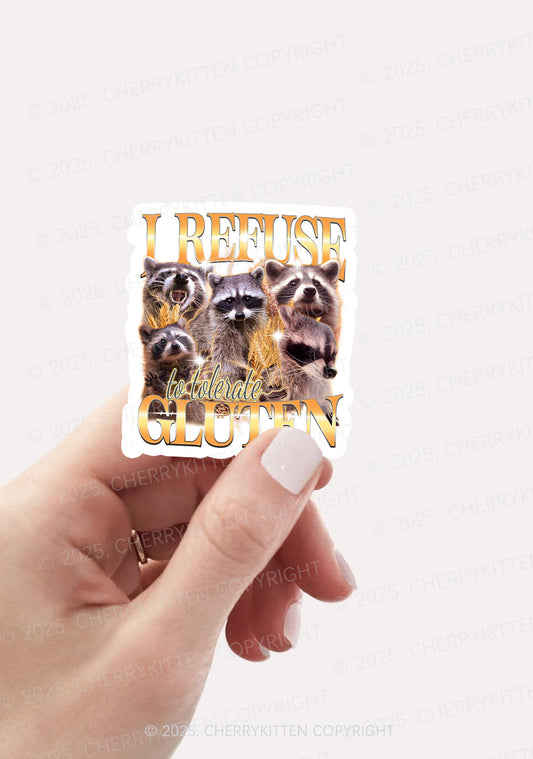 Raccoons Refuse Tolerate Gluten 1Pc Y2K Sticker Cherrykitten