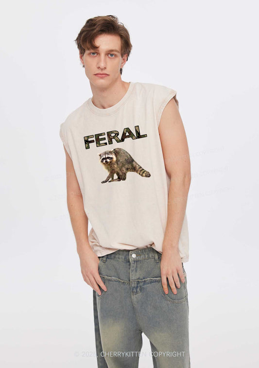 Feral Raccoon Y2K Washed Muscle Tank Cherrykitten