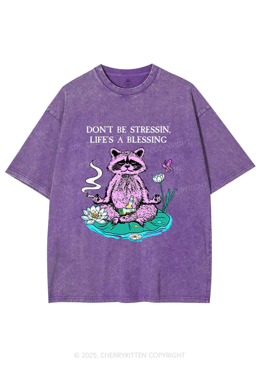 Dont Stress Raccoon Y2K Shirts Washed Tee Cherrykitten