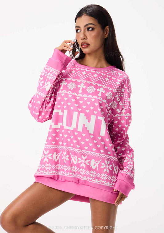 Pink Cxxt Y2K Christmas Knit Sweatshirt Cherrykitten