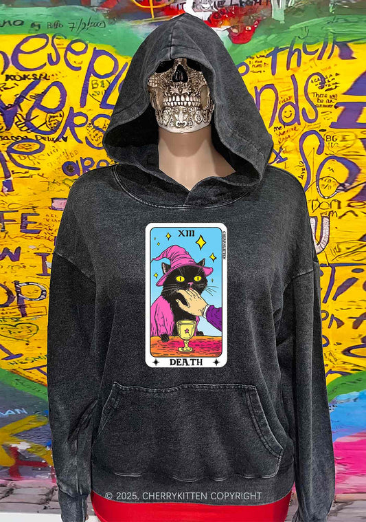 Halloween Death Black Cat Y2K Washed Hoodie Cherrykitten