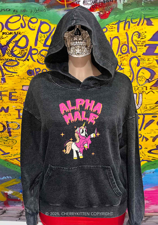 Halloween Unicorn Alpha Male Y2K Washed Hoodie Cherrykitten