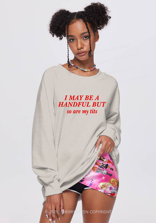 I May Be A Handful Y2K Washed Sweatshirts Cherrykitten