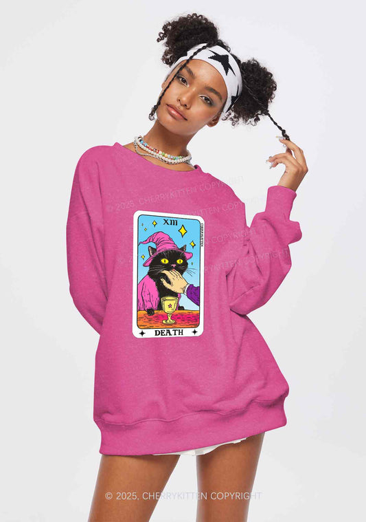 Halloween Death Black Cat Y2K Washed Sweatshirts Cherrykitten