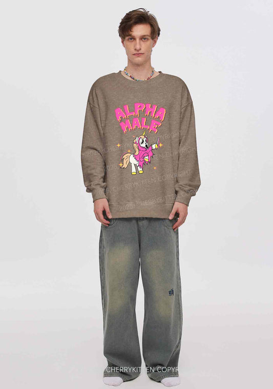 Halloween Unicorn Alpha Male Y2K Washed Sweatshirts Cherrykitten