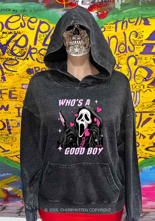 Halloween Ghost Good Boy Y2K Washed Hoodie Cherrykitten