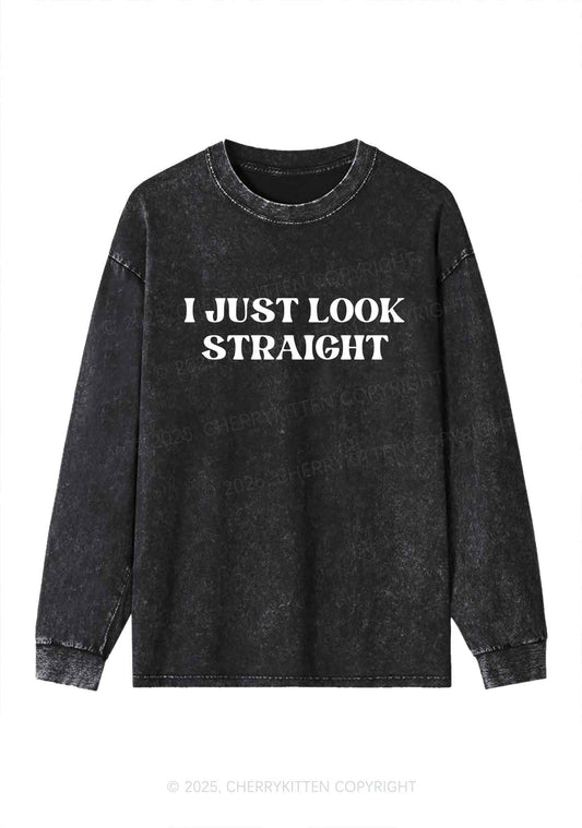 I Just Look Straight Y2K Washed Long Sleeves Cherrykitten