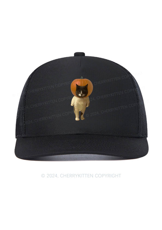 Pumpkin Head Cat Halloween Y2K Trucker Mesh Hat Cherrykitten