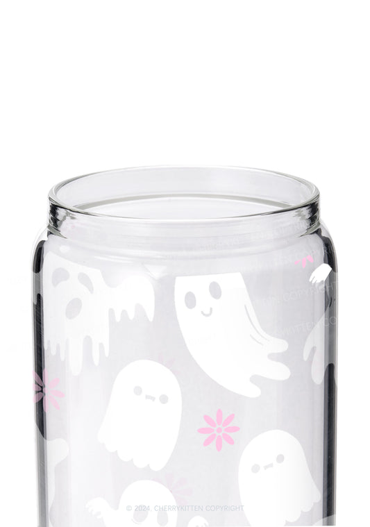 Halloween White Ghost Y2K Printed Glass Cup Cherrykitten