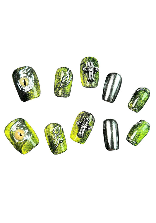 Halloween Green Eyes Y2K Press On Nails Cherrykitten