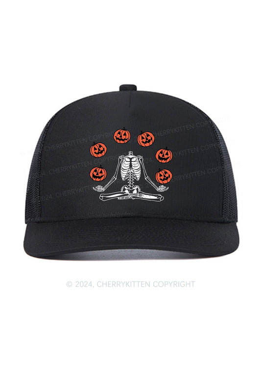 Halloween Pumpkin Head Skeleton Y2K Trucker Mesh Hat Cherrykitten