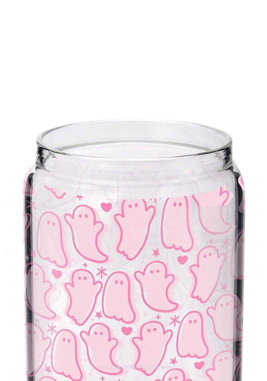 Halloween Pink Ghost Y2K Printed Glass Cup Cherrykitten