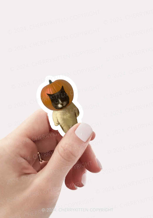 Pumpkin Head Cat Halloween 1Pc Y2K Sticker Cherrykitten
