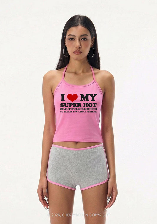 Love My Super Hot GF Valentine's Day Y2K Halter Neck Cami Cherrykitten