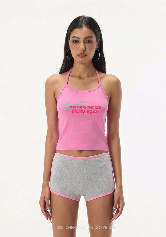 Rhinestone Make America Slxtty Again Y2K Halter Neck Cami Cherrykitten