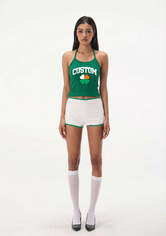 Custom Text Shamrock St Patricks Y2K Halter Neck Cami Cherrykitten