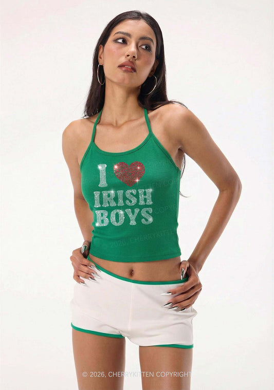 Rhinestone I Love Irish Boys St Patricks Y2K Halter Neck Cami Cherrykitten