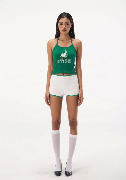 Lucky Goose On The Loose St Patricks Y2K Halter Neck Cami Cherrykitten
