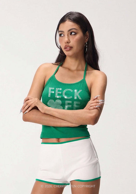 Rhinestone Feck Off St Patricks Y2K Halter Neck Cami Cherrykitten