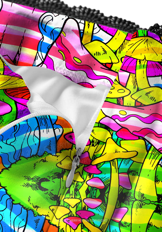 Trippy Mushrooms Y2K Print Mini Skirt Cherrykitten