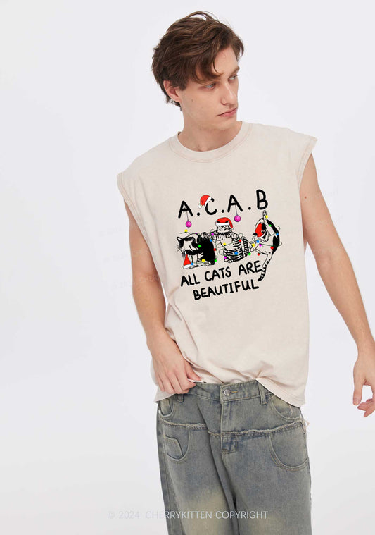 Christmas ACAB Cats Y2K Washed Tank Cherrykitten