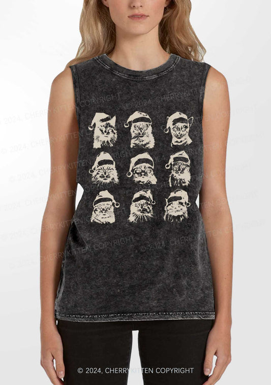 Christmas Hat Cats Y2K Washed Tank Cherrykitten