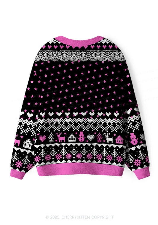 Hot Pink I Rode Faces Y2K Christmas Knit Sweatshirt Cherrykitten