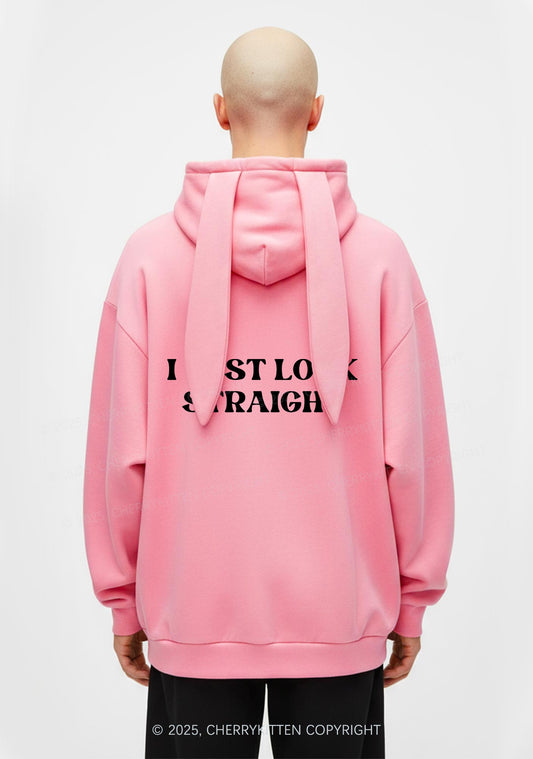 I Just Look Straight Y2K Bunny Ear Zip Hoodie Cherrykitten