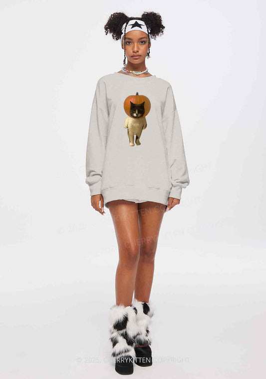 Halloween Pumpkin Head Cat Y2K Washed Sweatshirts Cherrykitten