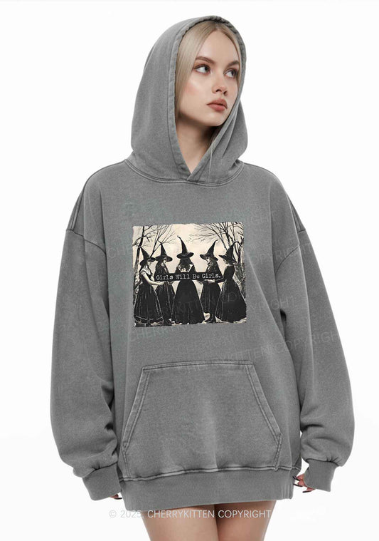 Halloween Girls Will Be Girls Y2K Washed Hoodie Cherrykitten