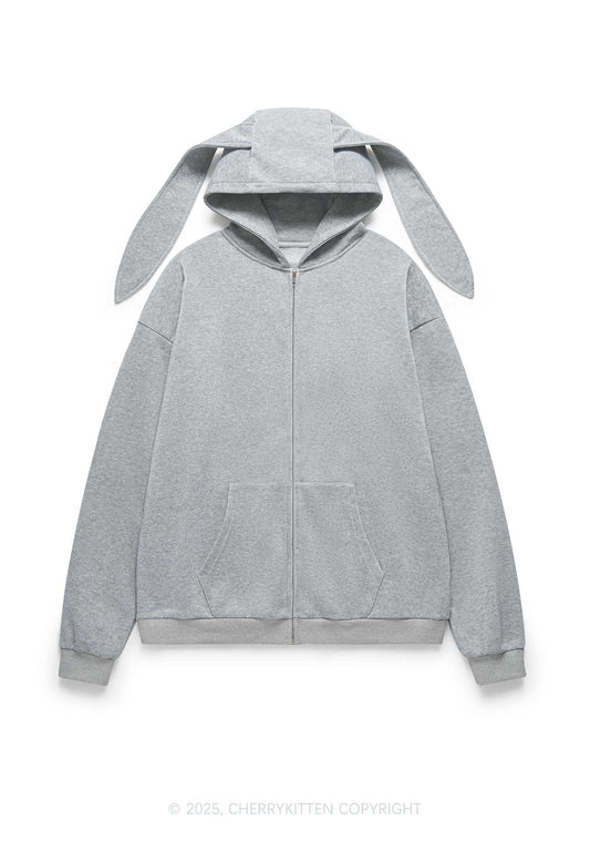 Never Met A Man Y2K Bunny Ear Zip Hoodie Cherrykitten
