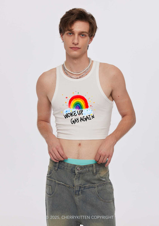 Woke Up Gay Again Y2K Crop Tank Top Cherrykitten