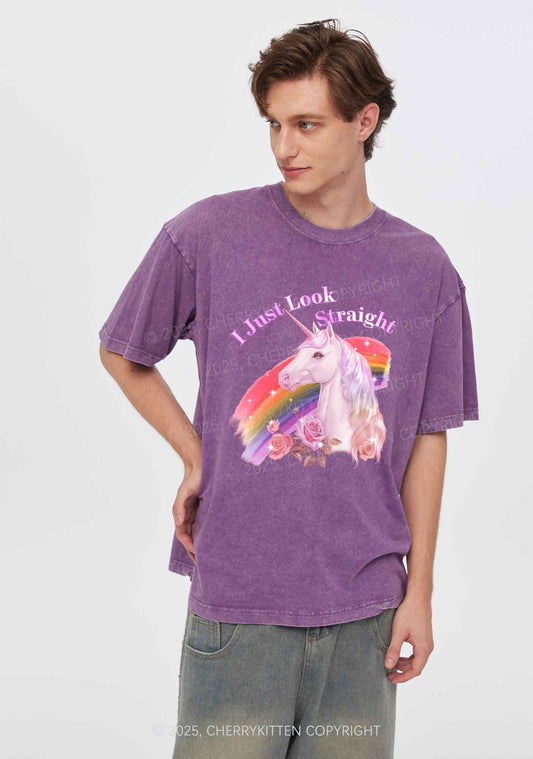Look Straight Unicorn Pride Y2K Shirts Washed Tee Cherrykitten