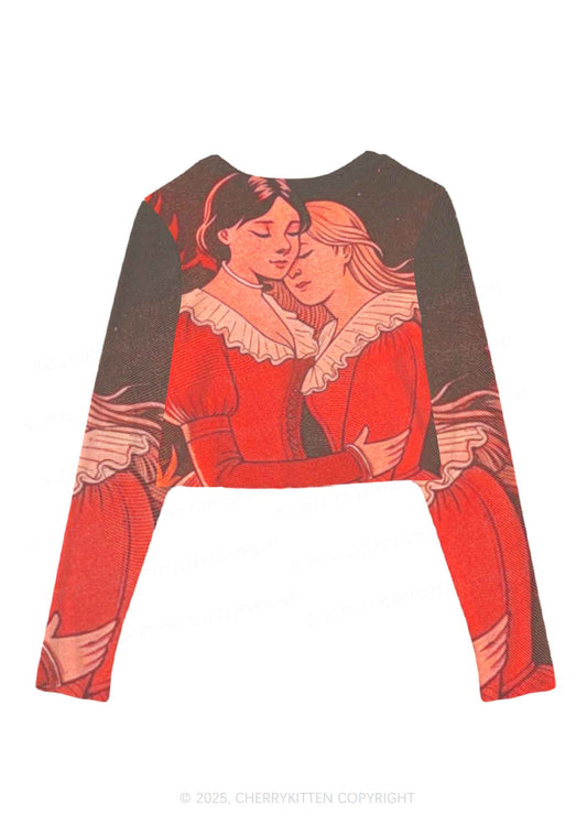 Lesbian Princess Pride Y2K Mesh Long Sleeve Crop Top Cherrykitten