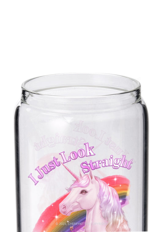 Look Straight Unicorn Pride Y2K Printed Glass Cup Cherrykitten