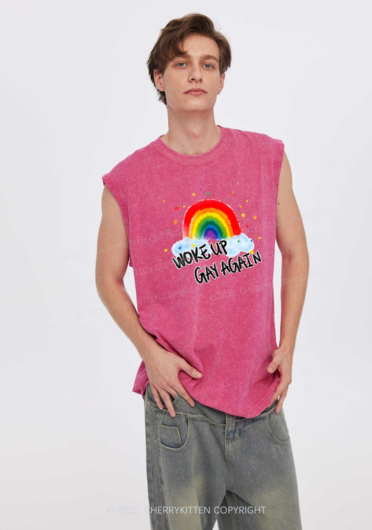 Woke Up Gay Again Y2K Washed Muscle Tank Cherrykitten
